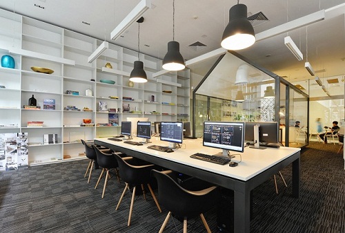 Chú ý tạo những hình khối và đường nét không gian văn phòng cũng là một ý tưởng khá hay ho cho bạn. Việc thiết kế văn phòng nếu như trước đây thường hướng đến sự khép kín thì bây giờ không gian tròn với những đường phân vùng vô cùng ấn tượng mới là xu hướng.